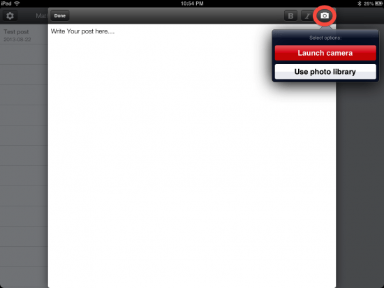 At this point, students can logout of the web-based version of blogger and begin posting via the Blogger iPad app.